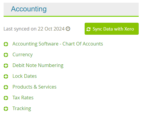 If this button is clicked then Caax and Xero will sync settings for the areas shown below.