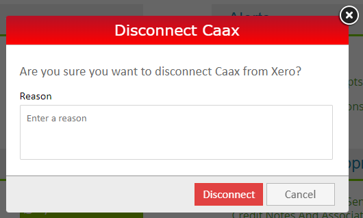 Click on the Disconnect from Xero button and the pop up below will be displayed.